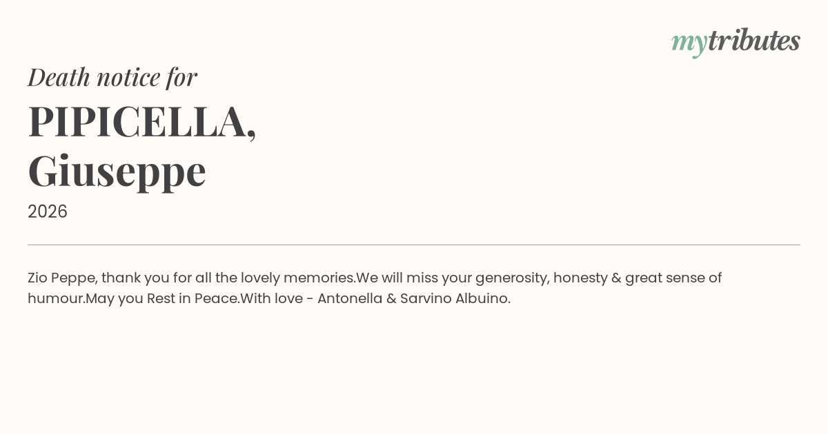 12°CZio Peppe, thank you for all the lovely memories.