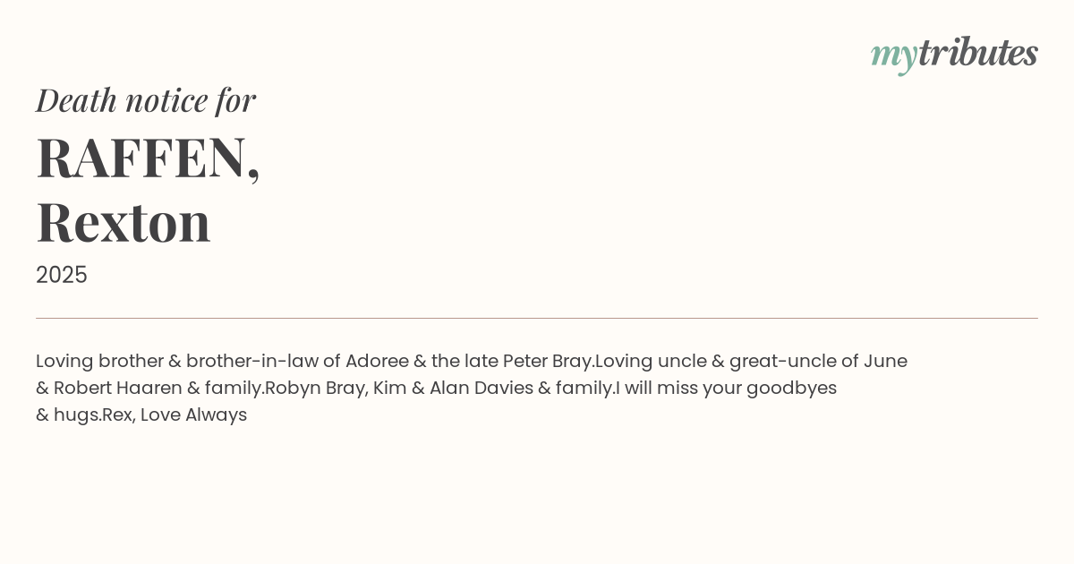 12°CLoving brother & brother-in-law of Adoree & the late Peter Bray.