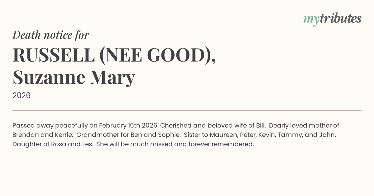 12°CPassed away peacefully on February 16th 2026.