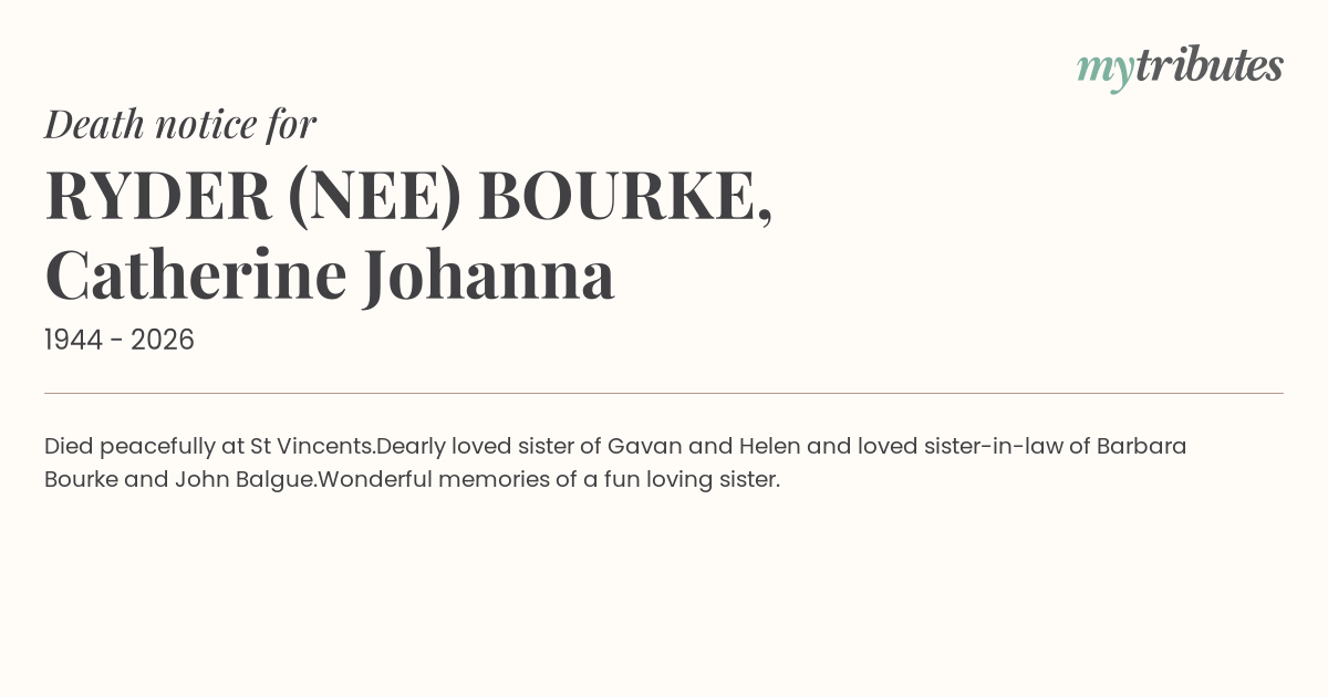 Dearly loved sister of Gavan and Helen and loved sister-in-law of Barbara Bourke and John Balgue.