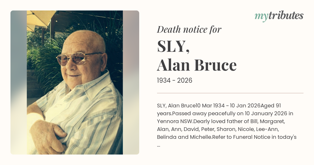Dearly loved father of Bill, Margaret, Alan, Ann, David, Peter, Sharon, Nicole, Lee-Ann, Belinda and Michelle.
