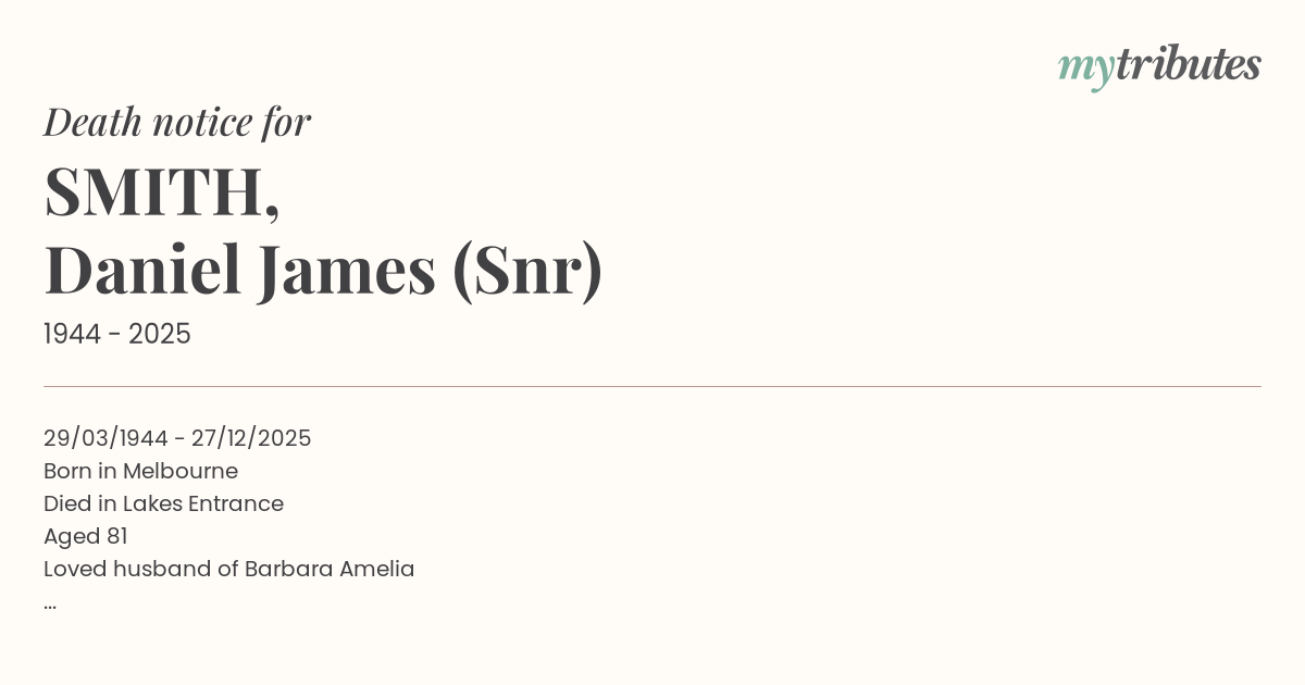 Smith. Deceased 26/09/2016
