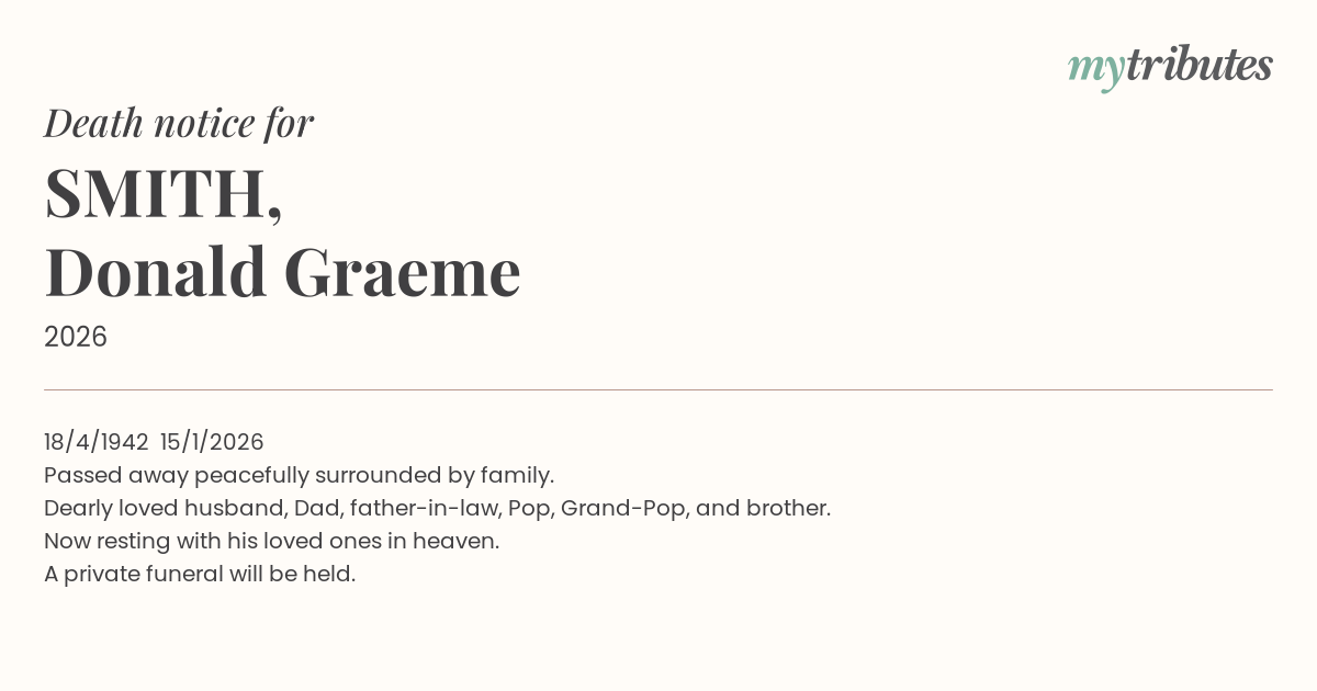 Dearly loved husband, Dad, father-in-law, Pop, Grand-Pop, and brother.