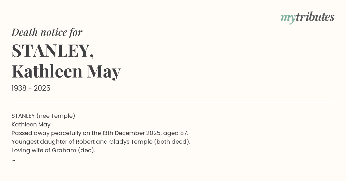 Passed away peacefully on the 13th December 2025, aged 87.