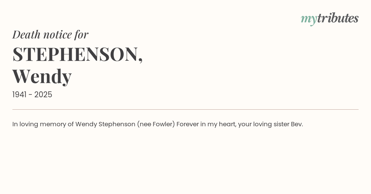 12°CIn loving memory of Wendy Stephenson (nee Fowler)