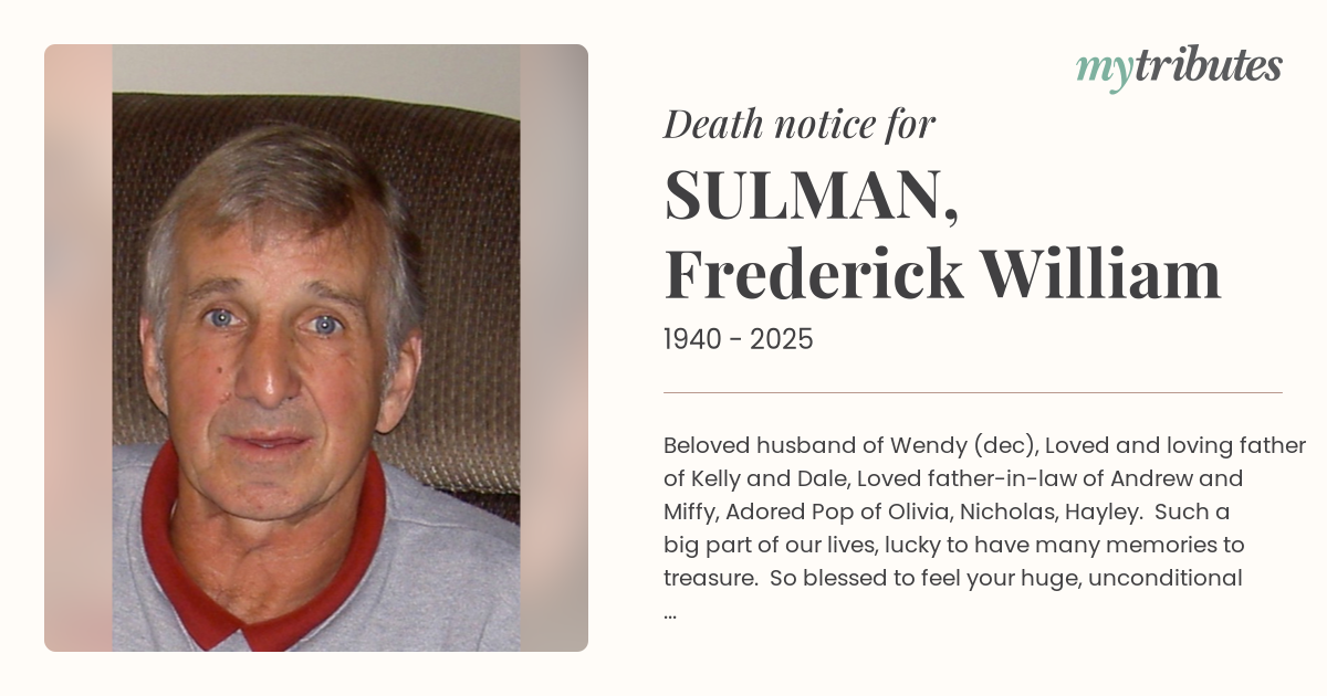12°CBeloved husband of Wendy (dec), Loved and loving father of Kelly and Dale, Loved father-in-law of Andrew and Miffy, Adored Pop of Olivia, Nicholas, Hayley. Such a big part of our lives, lucky to have many memories to treasure. So blessed to feel your huge, unconditional love and you bursting with pride in your family, we miss you. Now with our Heavenly Father and reunited with mum.