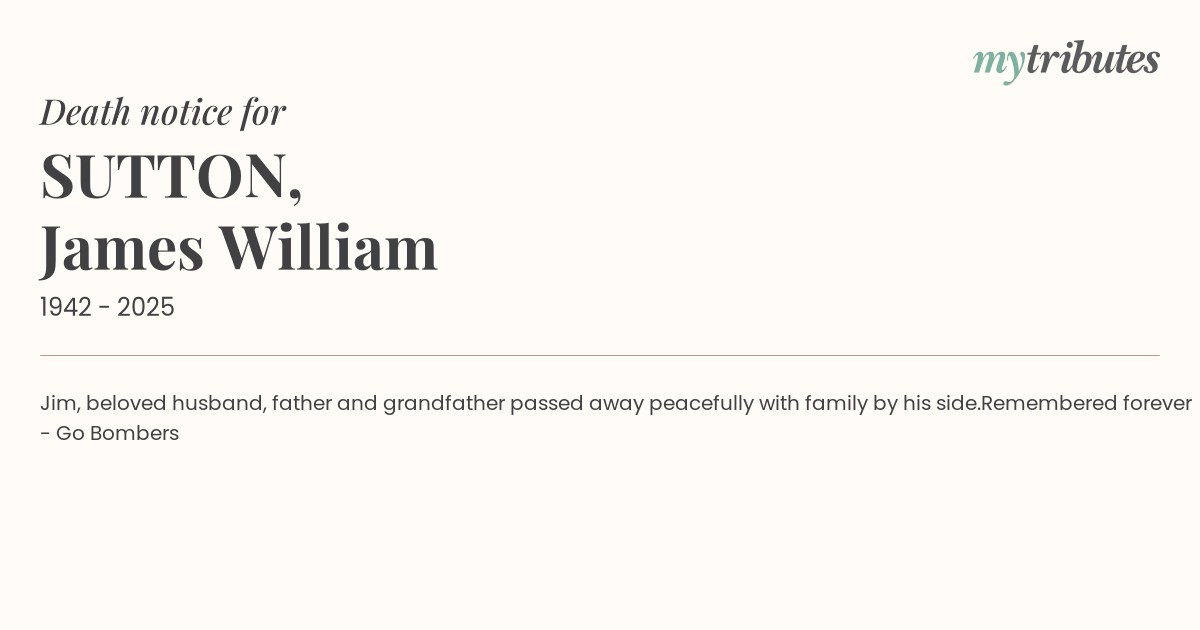 12°CJim, beloved husband, father and grandfather passed away peacefully with family by his side.