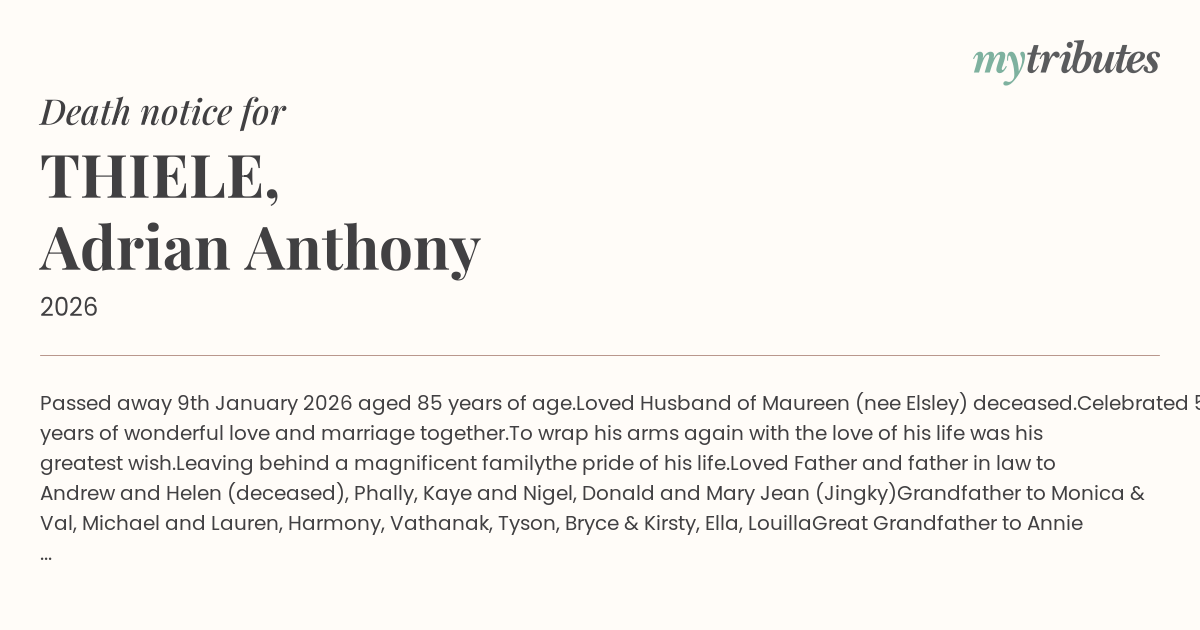 12°CPassed away 9th January 2026 aged 85 years of age.