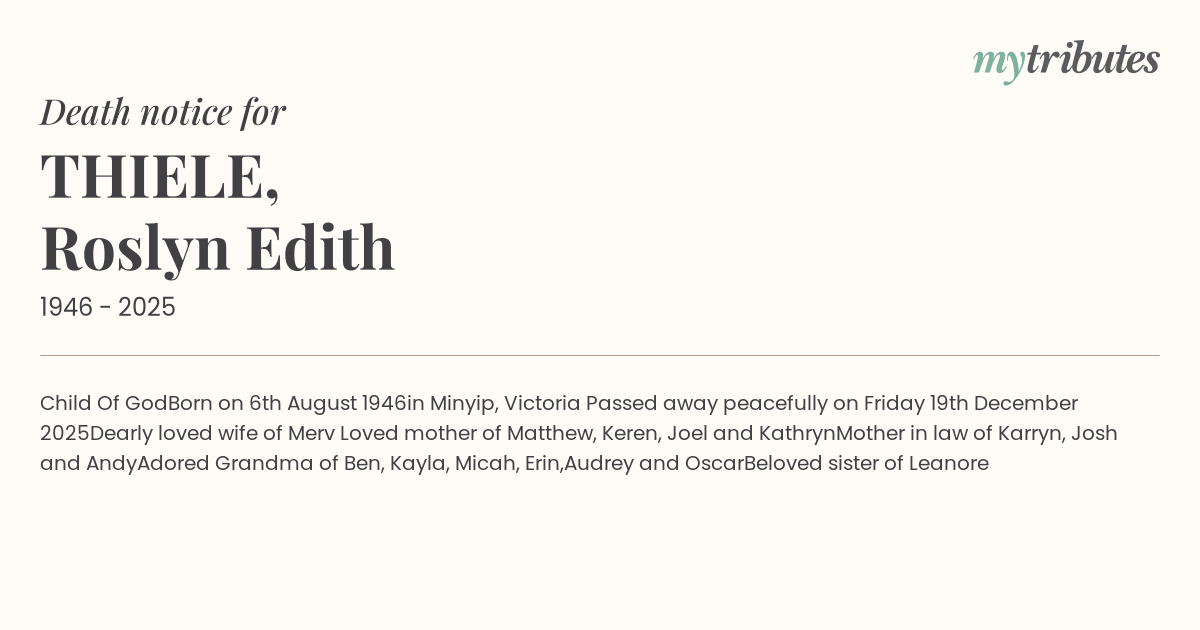 Passed away peacefully on Friday 19th December 2025