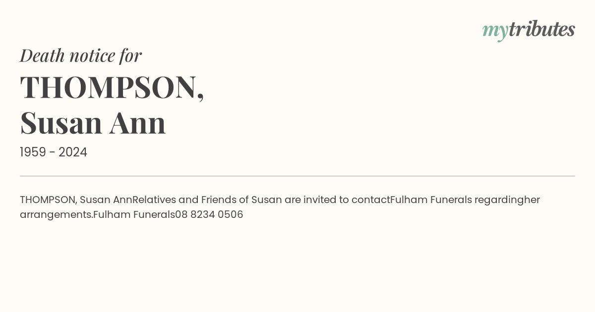 Relatives and Friends of Susan are invited to contact