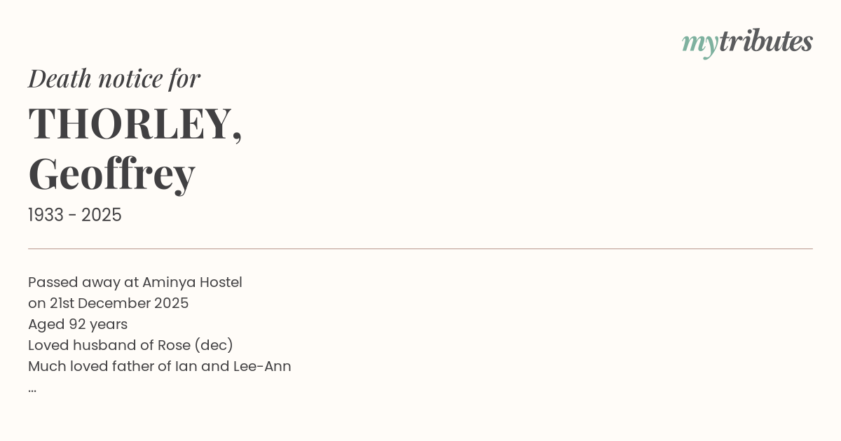 Much loved father of Ian and Lee-Ann