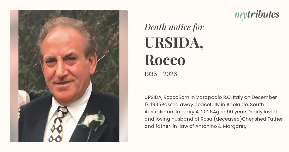 Rocco will be lovingly remembered by all his family and friends in Australia and Italy