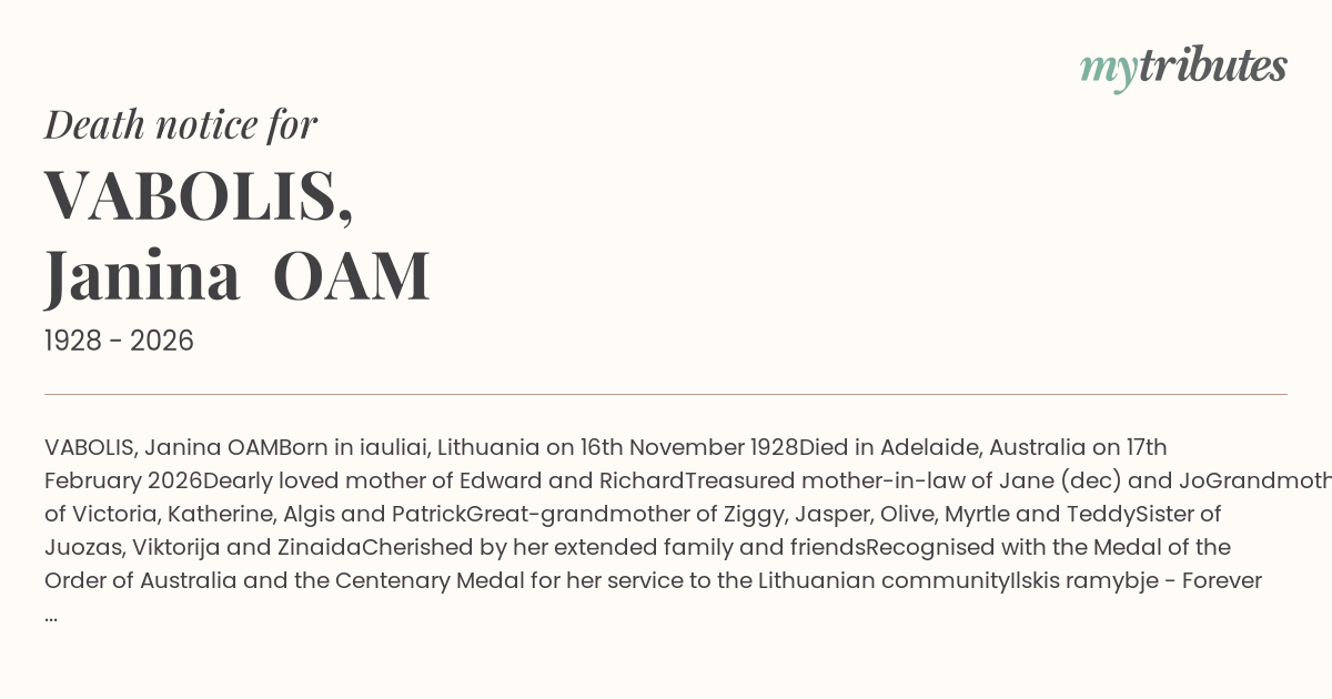 Recognised with the Medal of the Order of Australia and the Centenary Medal for her service to the Lithuanian community