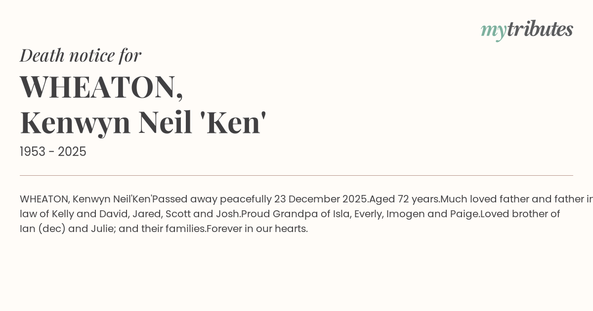 Passed away peacefully 23 December 2025.