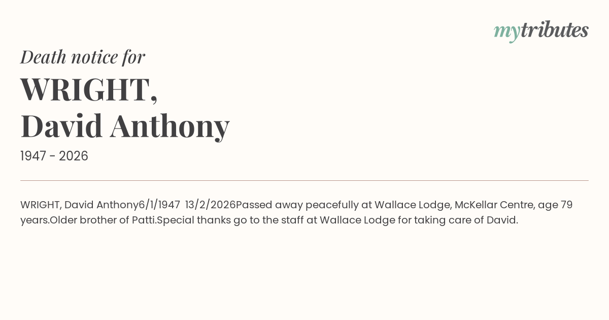 Passed away peacefully at Wallace Lodge, McKellar Centre, age 79 years.