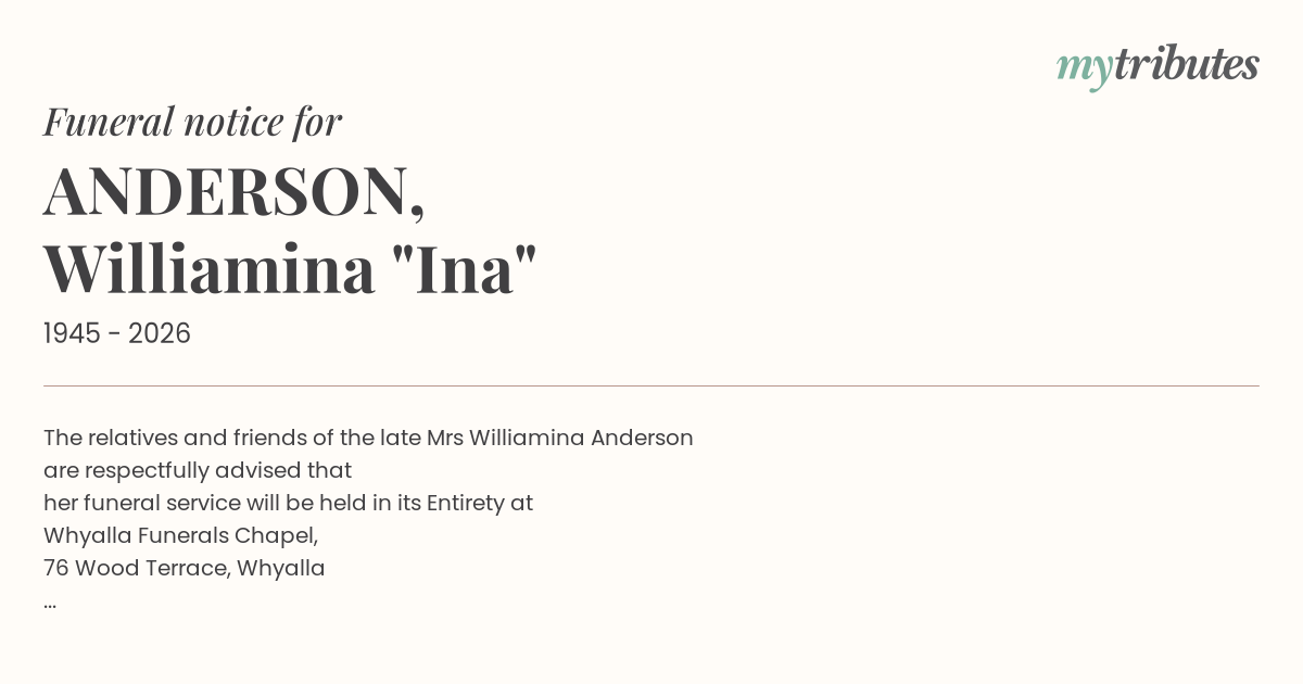 12°CThe relatives and friends of the late Mrs Williamina Anderson