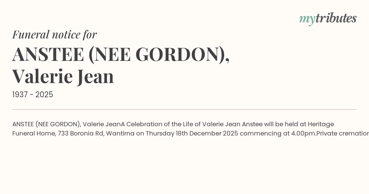 A Celebration of the Life of Valerie Jean Anstee