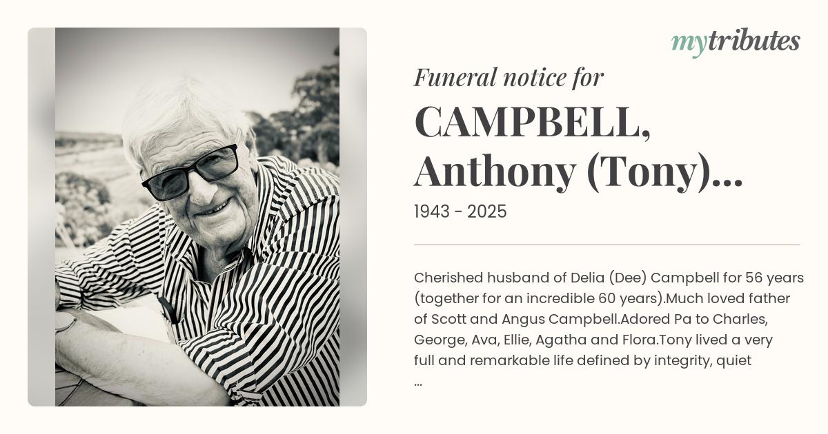 12°CCherished husband of Delia (Dee) Campbell for 56 years (together for an incredible 60 years).