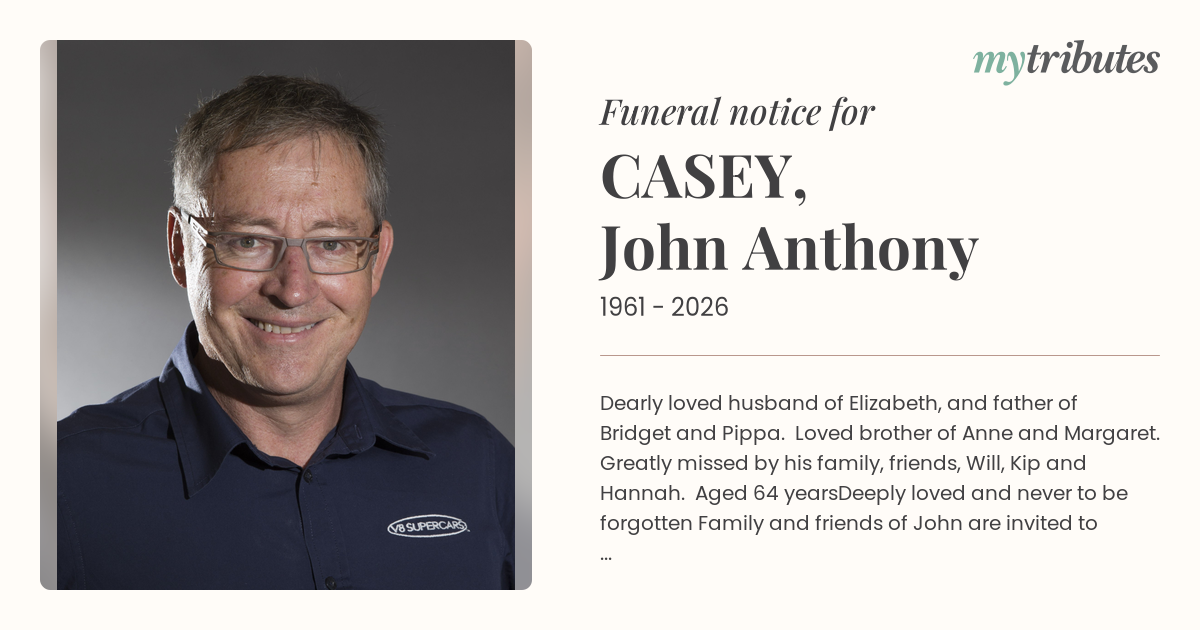 Family and friends of John are invited to attend a Celebration of his Life, to be held on Tuesday, 3 February, in the North Chapel, Northern Suburbs Crematorium, Delhi Rd, North Ryde, at 11:15am.