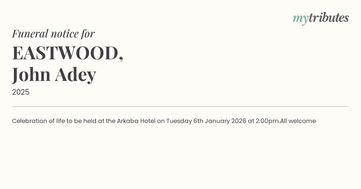 12°CCelebration of life to be held at the Arkaba Hotel