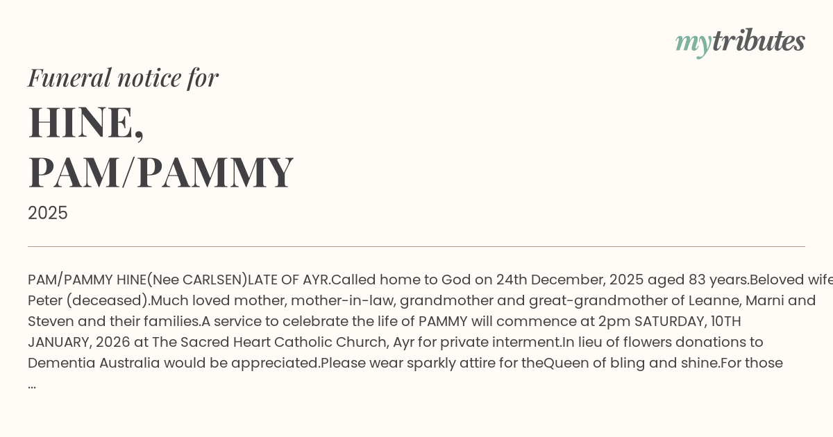 tinyurl.com/PamelaHineFuneral
