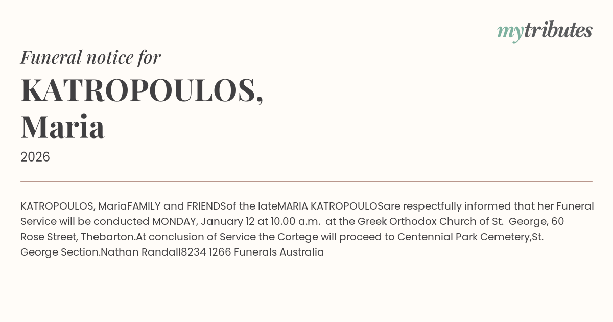 are respectfully informed that her Funeral Service