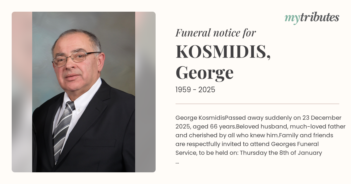 Family and friends are respectfully invited to attend George’s Funeral Service, to be held on: