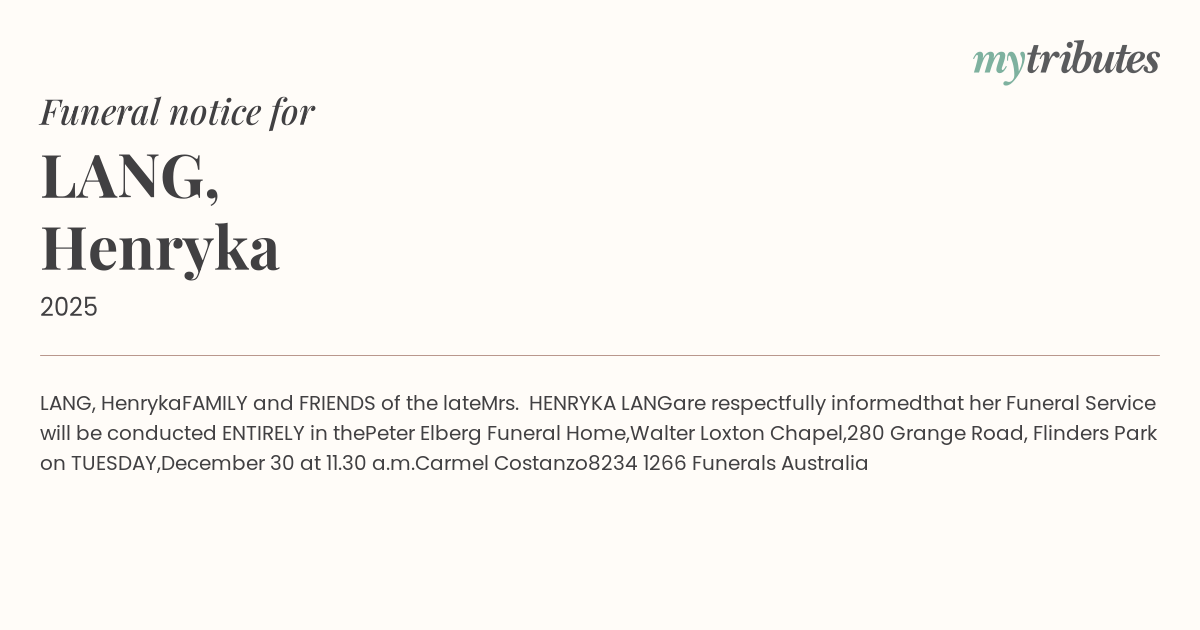 Website: http://www.peterelbergfunerals.com.au
