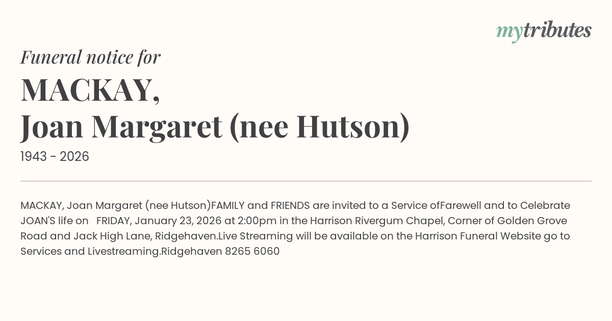 12°CMACKAY, Joan Margaret (nee Hutson)