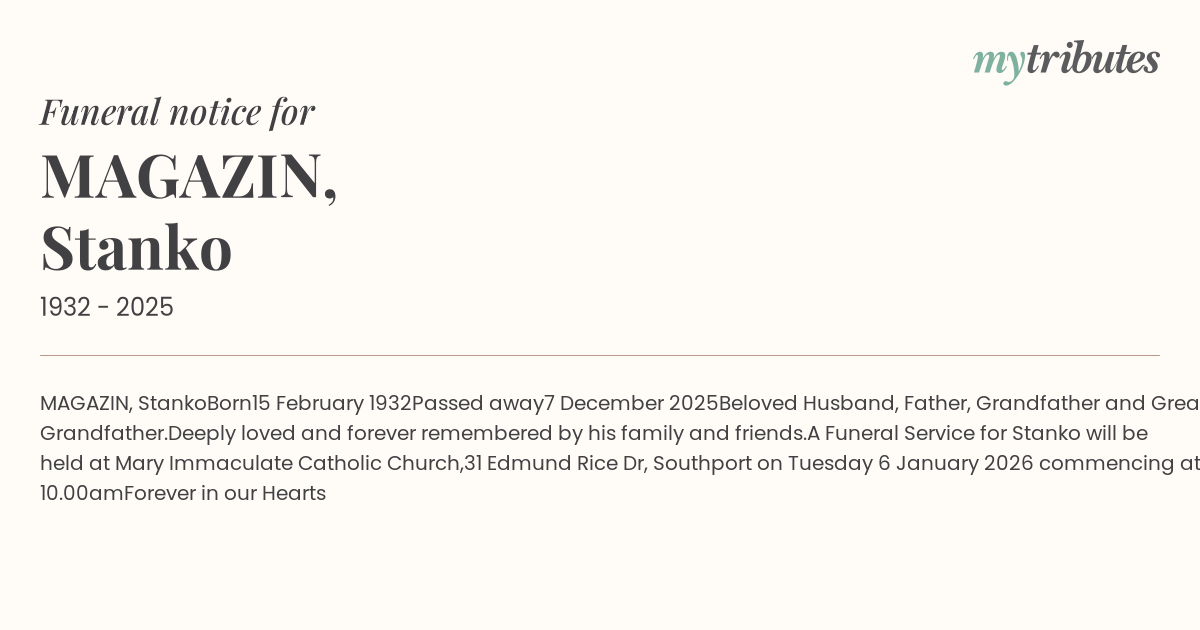 A Funeral Service for Stanko will be held at