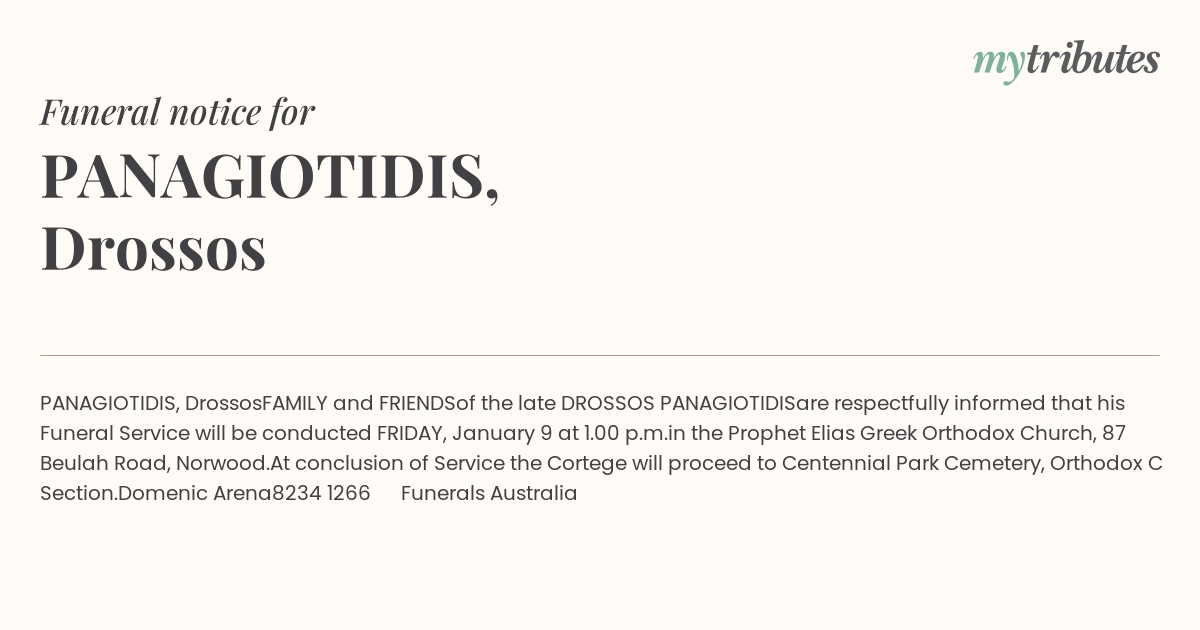 At conclusion of Service the Cortege will proceed to Centennial Park Cemetery, Orthodox C Section.
