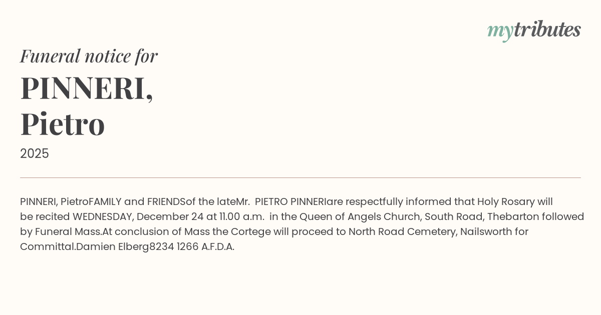 Website: http://www.peterelbergfunerals.com.au