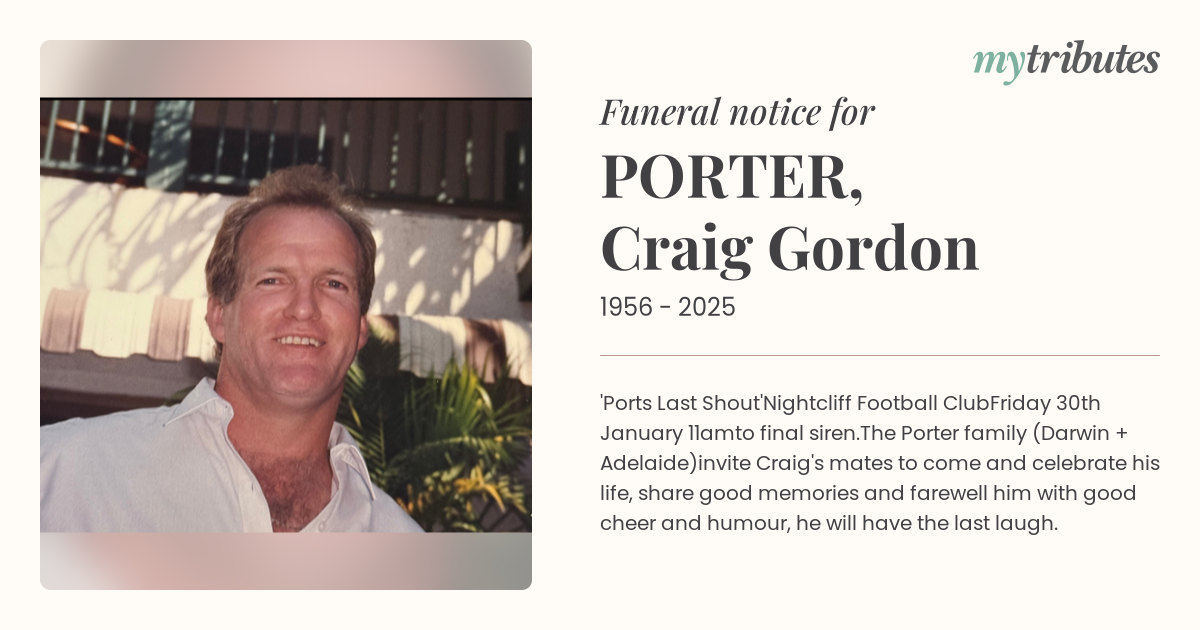 invite Craig's mates to come and celebrate his life, share good memories and farewell him with good cheer and humour, he will have the last laugh.
