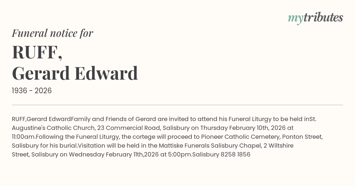 Family and Friends of Gerard are invited to attend his Funeral Liturgy to be held in