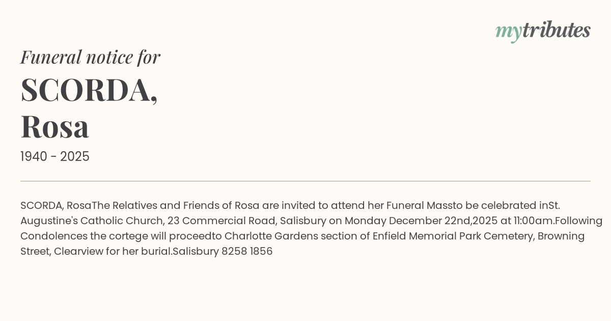 The Relatives and Friends of Rosa are invited to attend her Funeral Mass