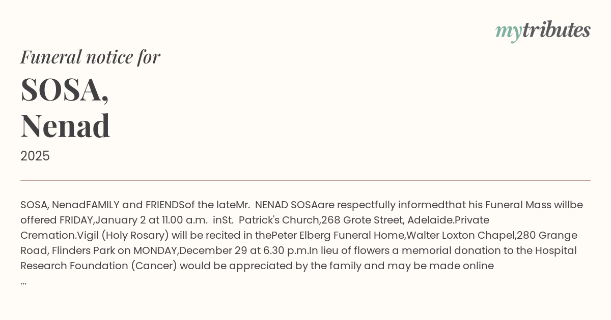 Website: http://www.peterelbergfunerals.com.au