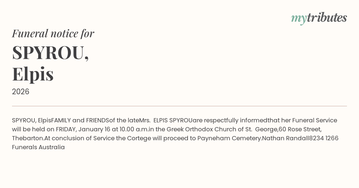 Website: http://www.peterelbergfunerals.com.au
