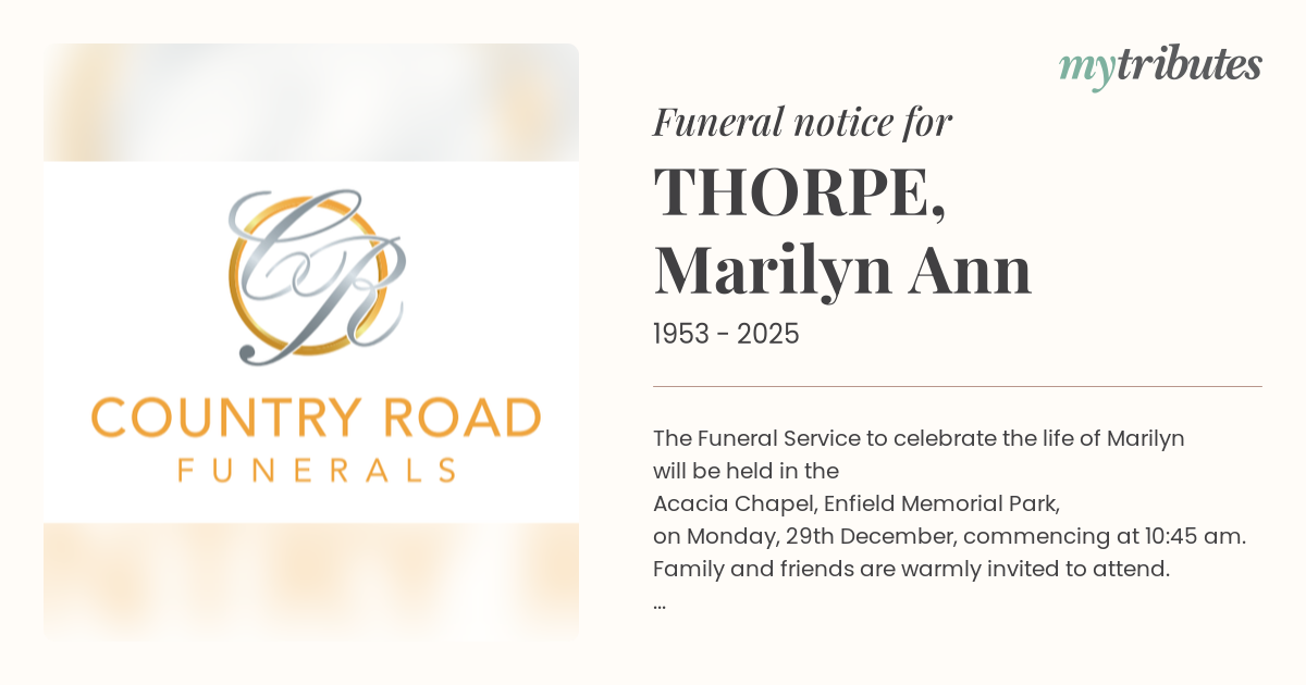 12°CThe Funeral Service to celebrate the life of Marilyn will be held in the