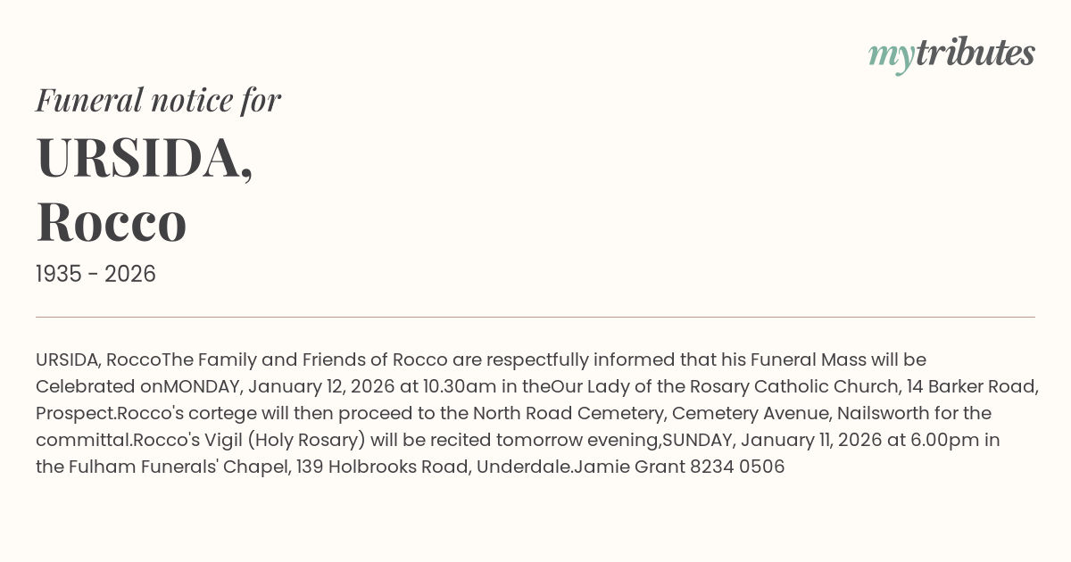 The Family and Friends of Rocco are respectfully informed that his Funeral Mass will be Celebrated on