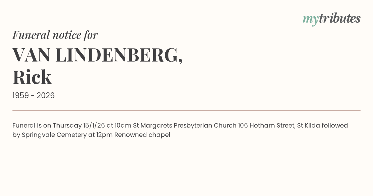12°CFuneral is on Thursday 15/1/26 at 10am